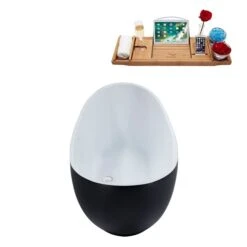 Streamline 28W X 62L Matte Black Acrylic Bathtub And A Glossy White Center Drain With Tray