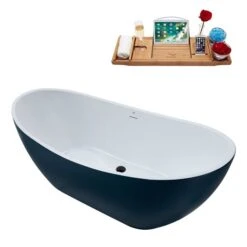 Streamline 28W X 62L Matte Light Blue Acrylic Bathtub And A Matte Black Center Drain With Tray
