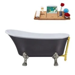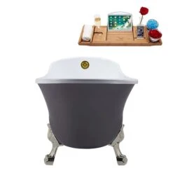 Be the first to review “Streamline 28W X 63L Matte Grey Acrylic Clawfoot Bathtub With Brushed Nickel Feet And Reversible Drain With Tray” Cancel reply