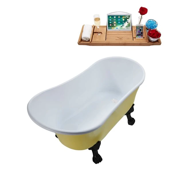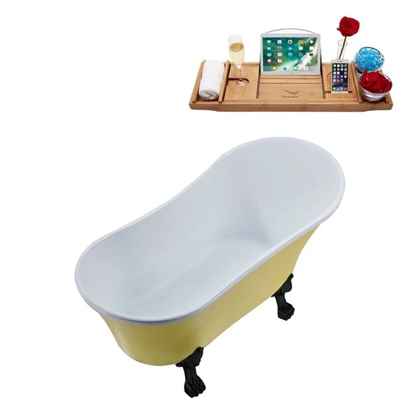 Streamline 28W X 63L Matte Yellow Acrylic Clawfoot Bathtub With Matte Black Feet And Reversible Drain With Tray