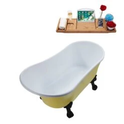 Be the first to review “Streamline 28W X 63L Matte Yellow Acrylic Clawfoot Bathtub With Matte Black Feet And Reversible Drain With Tray” Cancel reply