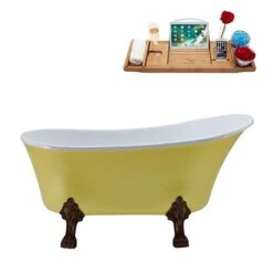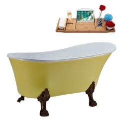 Streamline 28W X 63L Matte Yellow Acrylic Clawfoot Bathtub With Matte Oil Rubbed Bronze Feet And Reversible Drain With Tray