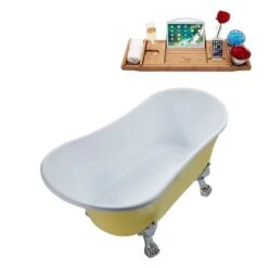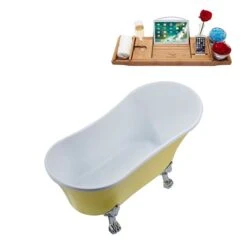 Be the first to review “Streamline 28W X 63L Matte Yellow Acrylic Clawfoot Bathtub With Polished Chrome Feet And Reversible Drain With Tray” Cancel reply