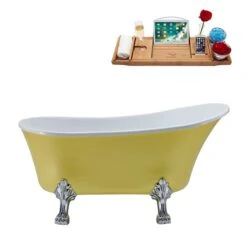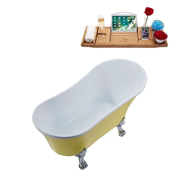 Streamline 28W X 63L Matte Yellow Acrylic Clawfoot Bathtub With Polished Chrome Feet And Reversible Drain With Tray