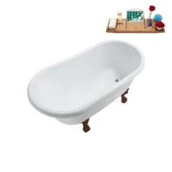 Be the first to review “Streamline 29.5 X 57.5-in Glossy White Acrylic Clawfoot Bathtub And A Polished Chrome BReversible Drain With Tray” Cancel reply