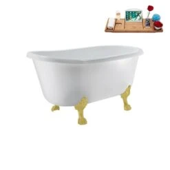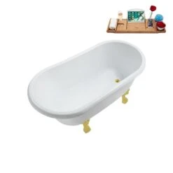 Be the first to review “Streamline 29.5 X 57.5-in Glossy White Acrylic Clawfoot Bathtub And A Polished Gold Reversible Drain With Tray” Cancel reply