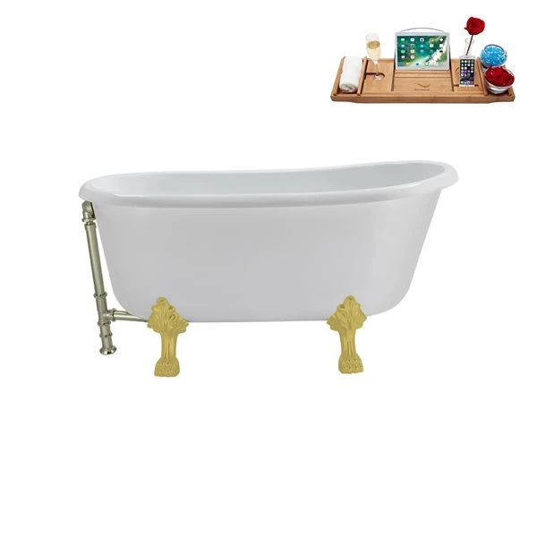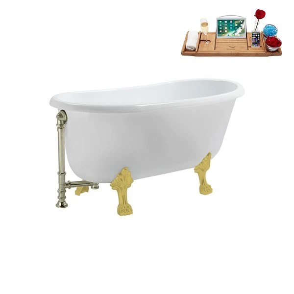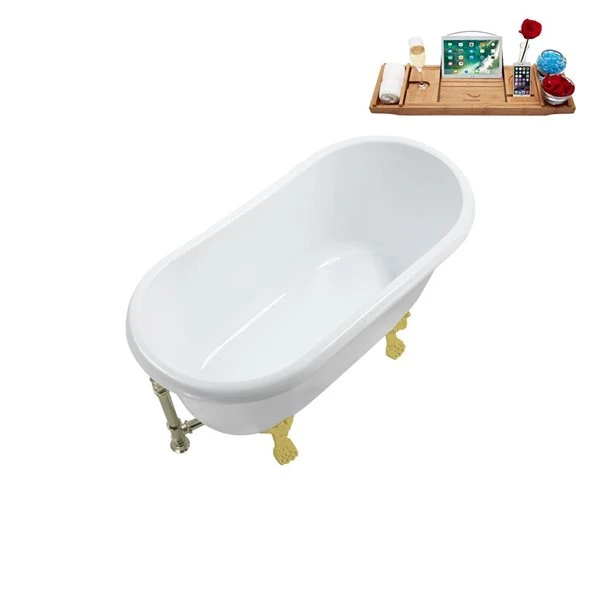 Streamline 32-in W X 60-in L Acrylic Oval Brushed Gold/White Center Drain Clawfoot Bathtub With Tray