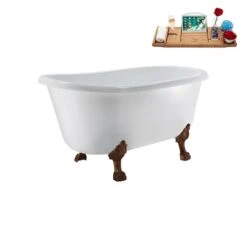 Be the first to review “Streamline 29.5 X 63-in Glossy White Acrylic Clawfoot Bathtub And A Brushed Nickel Reversible Drainwith Tray” Cancel reply
