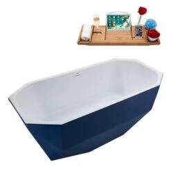 Be the first to review “Streamline 29W X 63L Matte Dark Blue Acrylic Bathtub And A Polished Gold Center Drain With Tray” Cancel reply