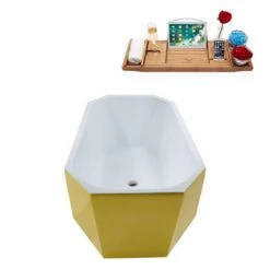 Streamline 28W X 59L Matte Yellow Acrylic Bathtub And A Polished Chrome Center Drain With Tray