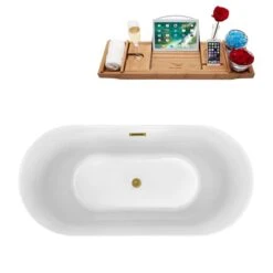 Be the first to review “Streamline 30.7-in W X 66.9-in L Black/Brushed Gold Acrylic Oval Center Drain Freestanding Bathtub With Tray” Cancel reply