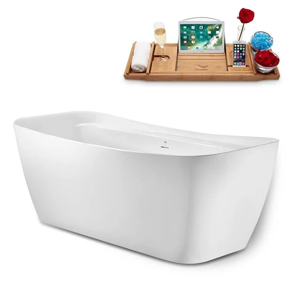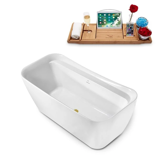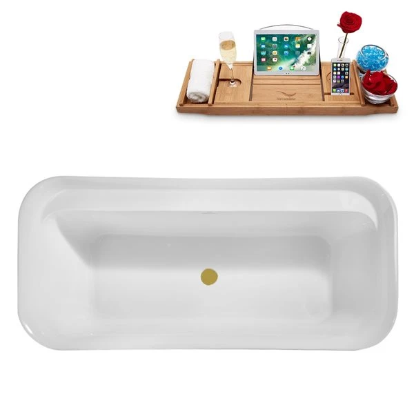 Streamline 30.7-in W X 66.9-in L White/Brushed Gold Rectangular Center Drain Freestanding Bathtub With Tray
