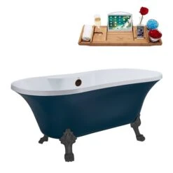 Be the first to review “Streamline 32-in W X 60-in L Acrylic Blue/Matte Oil-Rubbed Bronze Oval Center Drain Clawfoot Bathtub With Tray” Cancel reply