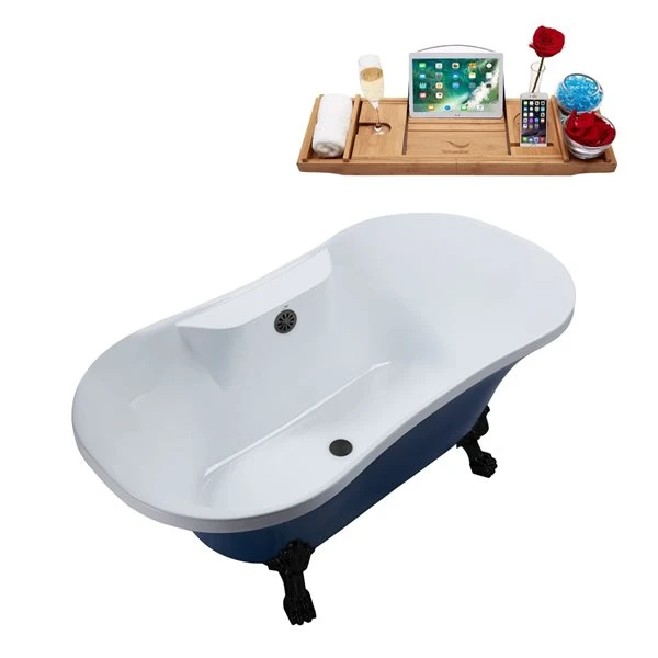 Streamline 32-in W X 60-in L Acrylic Oval Blue/Brushed Gunmetal Center Drain Clawfoot Bathtub With Tray