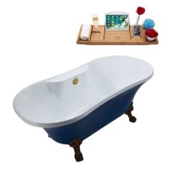 Be the first to review “Streamline 32-in W X 60-in L Oval Blue/Brushed Gold Acrylic Center Drain Clawfoot Bathtub With Tray” Cancel reply