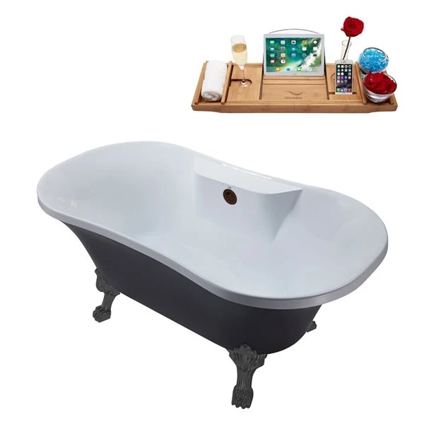 Streamline 32-in W X 60-in L Oval/Matte Oil-Rubbed Bronze Acrylic Center Drain Clawfoot Bathtub With Tray