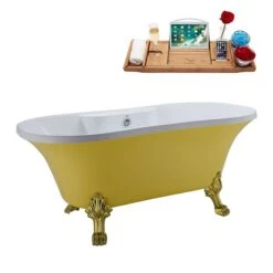 Be the first to review “Streamline 32-in W X 60-in L Polished Chrome/Yellow Acrylic Oval Center Drain Clawfoot Bathtub With Tray” Cancel reply