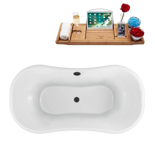 Streamline 32-in X 60-in White And Black Acrylic Oval Clawfoot Bathtub With Brushed Gun Metal Drain And Tray