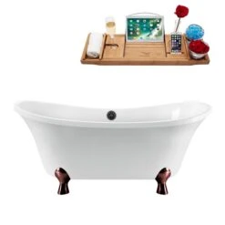 Be the first to review “Streamline 32-in X 60-in White And Oil-Rubbed Bronze Acrylic Oval Clawfoot Bathtub With Brushed Gun Metal Drain And Tray” Cancel reply