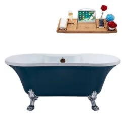 Be the first to review “Streamline 32W X 60L Matte Light Blue Acrylic Clawfoot Bathtub With Polished Chrome Feet And Center Drain With Tray” Cancel reply