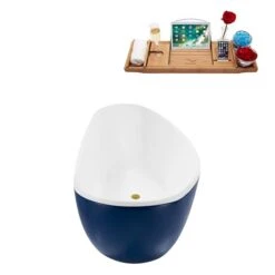 Be the first to review “Streamline 35.4-in W X 74.8-in L Blue/Brushed Gold Acrylic Oval Center Drain Freestanding Bathtub With Tray” Cancel reply