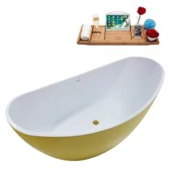 Be the first to review “Streamline 35.4-in W X 74.8-in L Yellow/Brushed Gold Acrylic Oval Center Drain Freestanding Bathtub With Tray” Cancel reply
