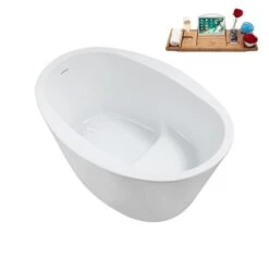 Streamline 29.5-in W X 59.1-in L White/Brushed Gold Oval Center Drain Freestanding Bathtub With Tray