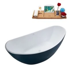 Be the first to review “Streamline 35W X 75L Matte Light Blue Acrylic Bathtub And A Glossy White Center Drain With Tray” Cancel reply