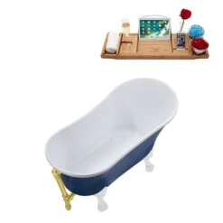 Be the first to review “Streamline 55.1-in Blue/Brushed Gold Acrylic Oval Reversible Drain Clawfoot Bathub With Tray” Cancel reply
