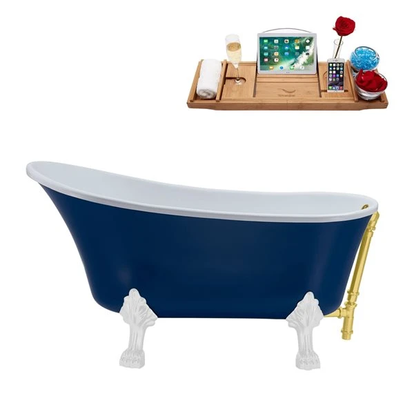 Streamline 32-in W X 60-in L Acrylic Blue/Polished Gold Oval Center Drain Clawfoot Bathtub With Tray