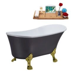 Streamline 55.1-in Gray/Matte Oil Rubbed Bronze Acrylic Oval Reversible Drain Clawfoot Bathub With Tray
