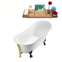 Streamline 32-in W X 60-in L Acrylic Oval Brushed Gold/White Center Drain Clawfoot Bathtub With Tray