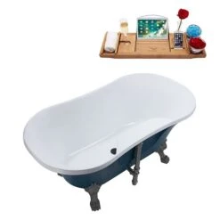 Be the first to review “Streamline 60-in L X 32-in W Blue/Brushed Gunmetal Acrylic Oval Center Drain Clawfoot Bathtub With Tray” Cancel reply
