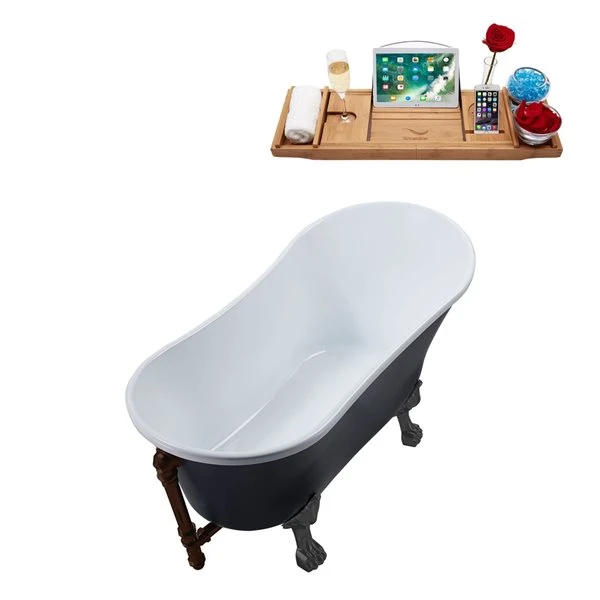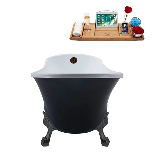 Streamline 63-in L X 28.3-in W Black Acrylic Oval Clawfoot Bathtub With Tub Tray And External Drain