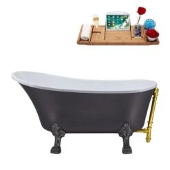 Streamline 63-in L X 28.3-in W Grey Acrylic Oval Clawfoot Bathtub – External Drain And Tub Tray Included