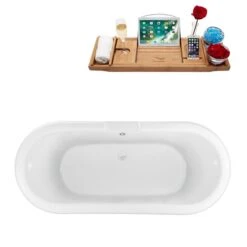 Streamline 66.9-in L X 29.1-in W White Acrylic Oval Clawfoot Bathtub With External Drain And Tub Tray Included