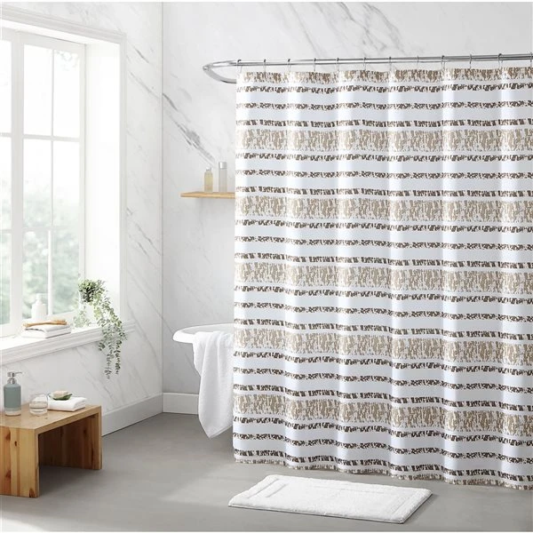 Swift Home 72-in X 70-in Polyester Brown Stripe Shower Curtain