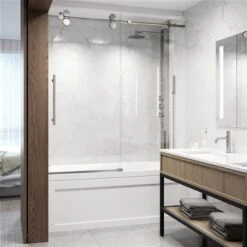 Be the first to review “Vigo Elan 66-in H Frameless Stainless Steel Sliding Laminated Glass Shower Door” Cancel reply