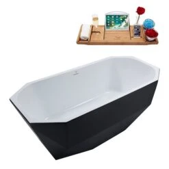 Streamline 28W X 59L Glossy White Acrylic Bathtub And A Matte Black Reversible Drain With Tray