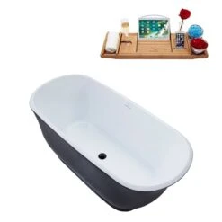 Streamline 28W X 59L Matte Black Acrylic Bathtub And A Brushed Nickel Center Drain With Tray