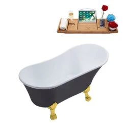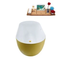 Streamline 28W X 59L Matte Yellow Acrylic Bathtub And A Polished Gold Center Drain With Tray