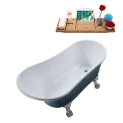 Streamline 28W X 59L Matte Light Blue Acrylic Bathtub And A Matte Black Center Drain With Tray