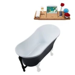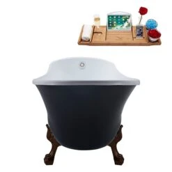 Streamline 28W X 62L Matte Light Blue Acrylic Bathtub And A Matte Black Center Drain With Tray