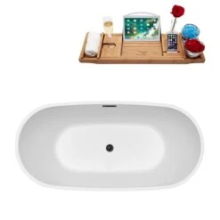Streamline 31.5-in W X 66.9-in L White Acrylic Oval External Drain Clawfoot Bathtub With Tub Tray
