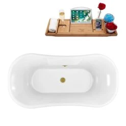 Streamline 34-in X 68-in Oval White Acrylic Clawfoot Bathtub With Brushed Gold Centre Drain And Tray