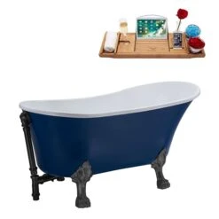 Streamline 55.1-in Blue/Matte Black Acrylic Oval Reversible Drain Clawfoot Bathub With Tray